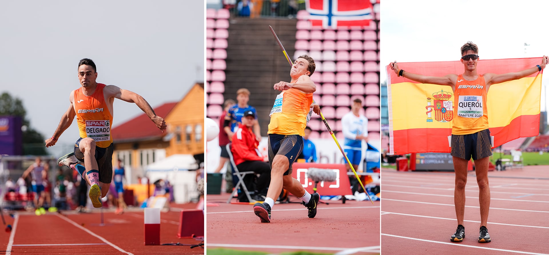 En el Europeo Sub-23 de Bergen, la palma se la llevó la sensacional medalla de oro que se colgó Pablo Delgado en triple salto, tras sorprender a todos sus rivales con un marcón personal de 16.55 en el cuarto intento. También creyó haber pillado ‘chapa’ Óscar Martínez en los 10.000m marcha, pero tras entrar tercero en meta, recibió un minuto de penalización y tuvo que contentarse con el 7º puesto. Esa misma 7ª plaza la ocuparon el ya internacional absoluto David González en altura y el discóbolo Marcos Moreno (que en la edición anterior ya había sido 5º); aunque el más contento de todos estos finalistas no medallistas en Noruega fue Pol Ferrer (5º en decatlón con marca personal).