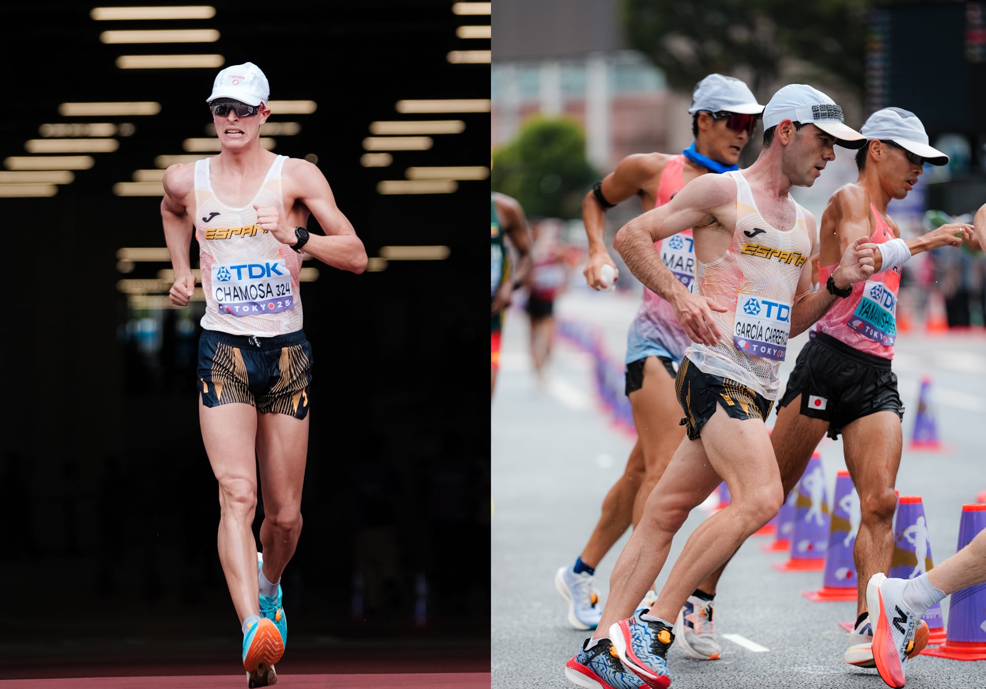 Por supuesto, no fue McGrath el único marchador destacado en Tokio, ya que hubo otros dos hombres que se apuntaron sendas plazas de finalista muy aplaudidas. En su primer gran campeonato estival a sus 28 años, Daniel Chamosa (que ya había sido 7º en Podebrady) complementó el buen resultado de su hermana Antía en mujeres obteniendo un destacado 6º puesto en los 35 km marcha. A su vez, el experimentado Diego García Carrera, bimedallista europeo y 6º en los JJ.OO. de Tokio, celebró por fin una posición noble en un Mundial, como 8º en los 20 km marcha, al cabo de seis participaciones. En cambio, el ilustre veterano Miguel Ángel López, que venía de brillar en Podebrady contribuyendo a la plata del equipo de 35 km marcha con una 3ª plaza individual y un valiosísimo nuevo récord de España de 2:23:48 (además de otro de 30 km al paso con 2:03:06), tuvo que conformarse con el 12º puesto en su octavo Mundial tras firmar un registro casi 10 minutos más lento que en la cita checa.