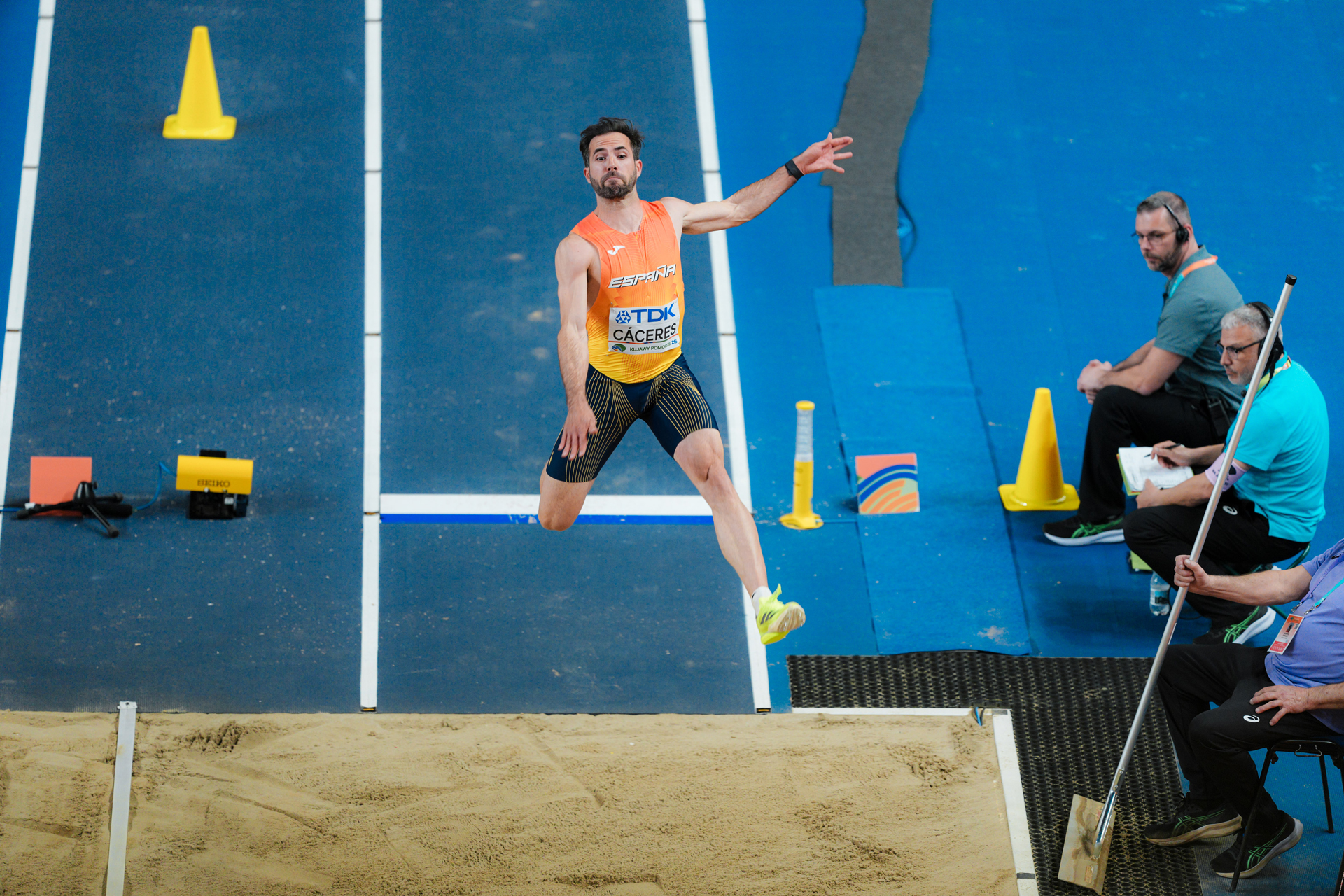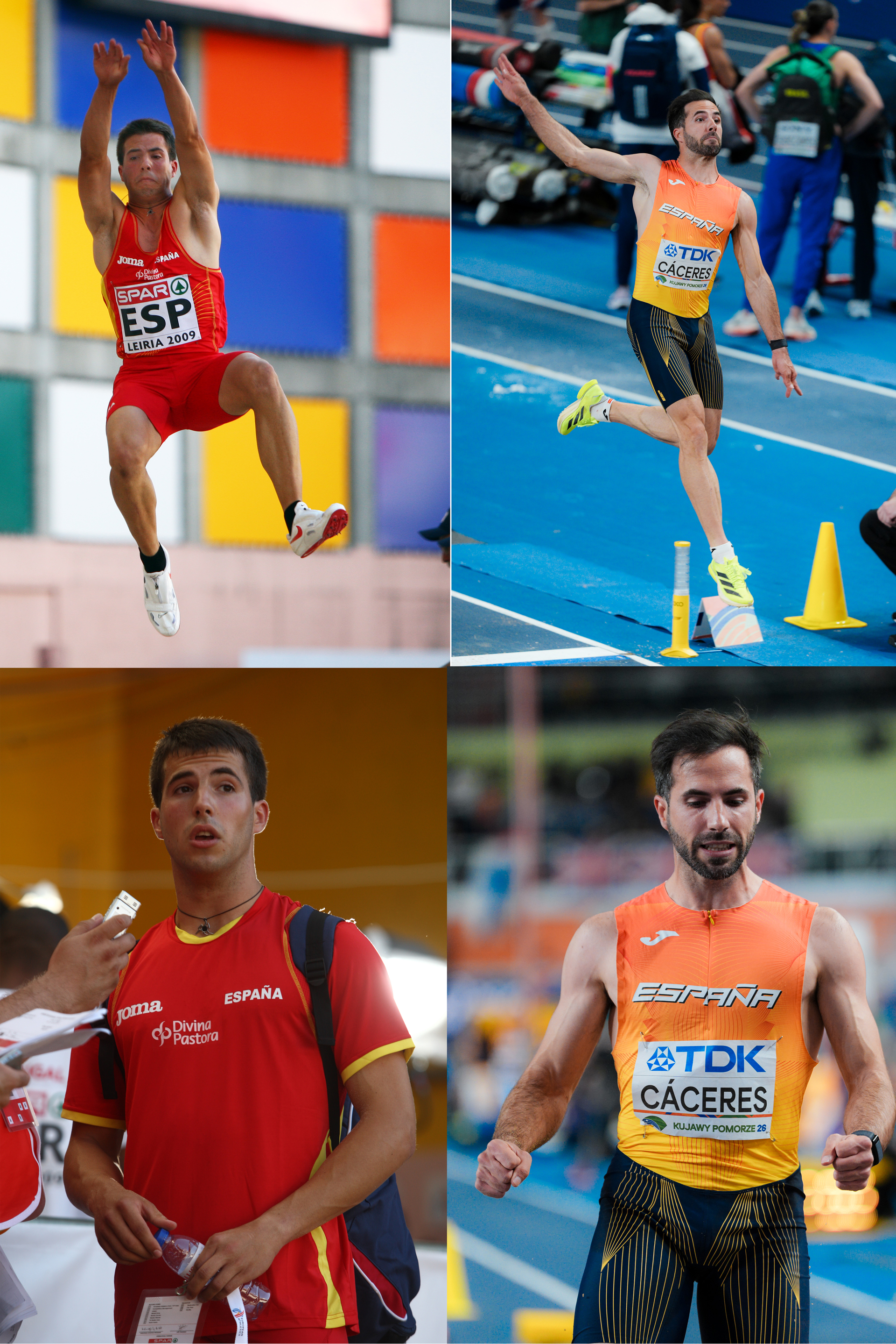Cuando Eusebio Cáceres (Onil, 1991) expulsa el aire por última vez antes de aventurarse a la incertidumbre del pasillo sintético -tras solicitar al público que acompase con palmas cada uno de sus estudiados y enérgicos zapatazos-, cuando ajusta la puntera de la zapatilla a la tabla de batida, cuando se entrega horizontalmente a los brazos de la ingravidez, cuando su coreografía aérea convierte el foso en un océano de arena… los nostálgicos no posamos la mirada en los arrabales del número 8, solemne y luminoso en la modernidad del panel de referencia. La dirigimos dos décadas atrás, a los primeros escarceos con el profesionalismo del más longevo (y regular) de los saltadores españoles, un tipo que apresó el mítico dígito por primera vez el 20 de junio de 2009 (ganando el Campeonato de Europa por Equipos en Leiria), y por última el pasado 22 de marzo, en la final del Mundial bajo techo de Toruń, donde ocupó la octava posición.