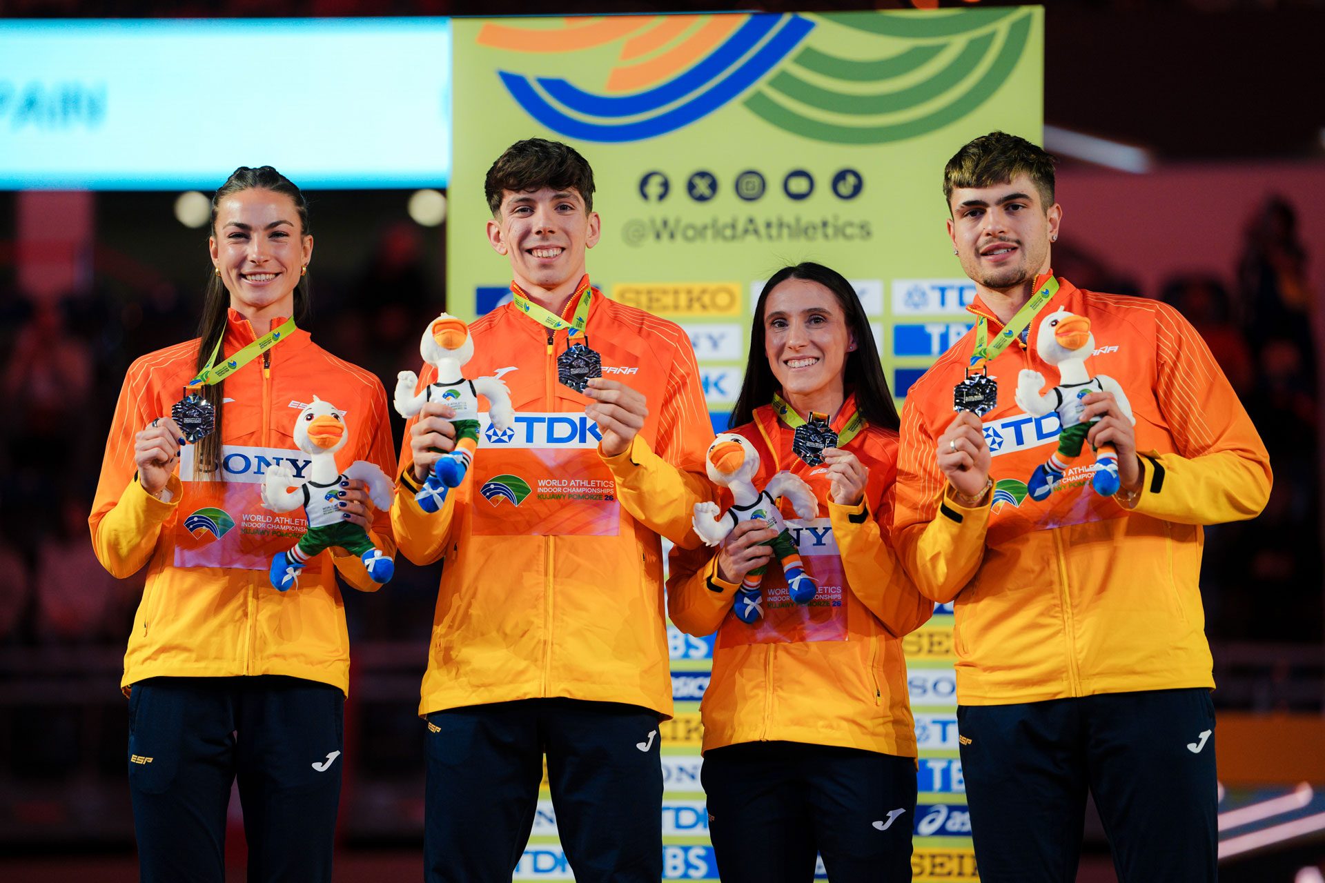 Llegar, competir y subir al podio. Así ha sido la actuación de #EspañaAtletismo en el relevo 4x400 m mixto en el Campeonato del Mundo Indoor, firmando una histórica medalla de plata y con otro gran protagonista en la jornada: Mohamed Attaoui, que se ha clasificado para la final de 800 m con récord de España (1:44.48).