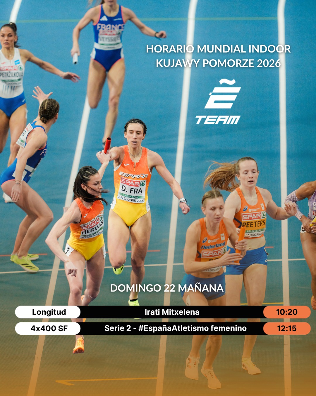 La jornada de domingo por la mañana pondrá en acción a la saltadora Irati Mitxelena en la final de longitud y al relevo femenino de 4x400m (relevistas y orden aún sin determinar) en busca de la final.