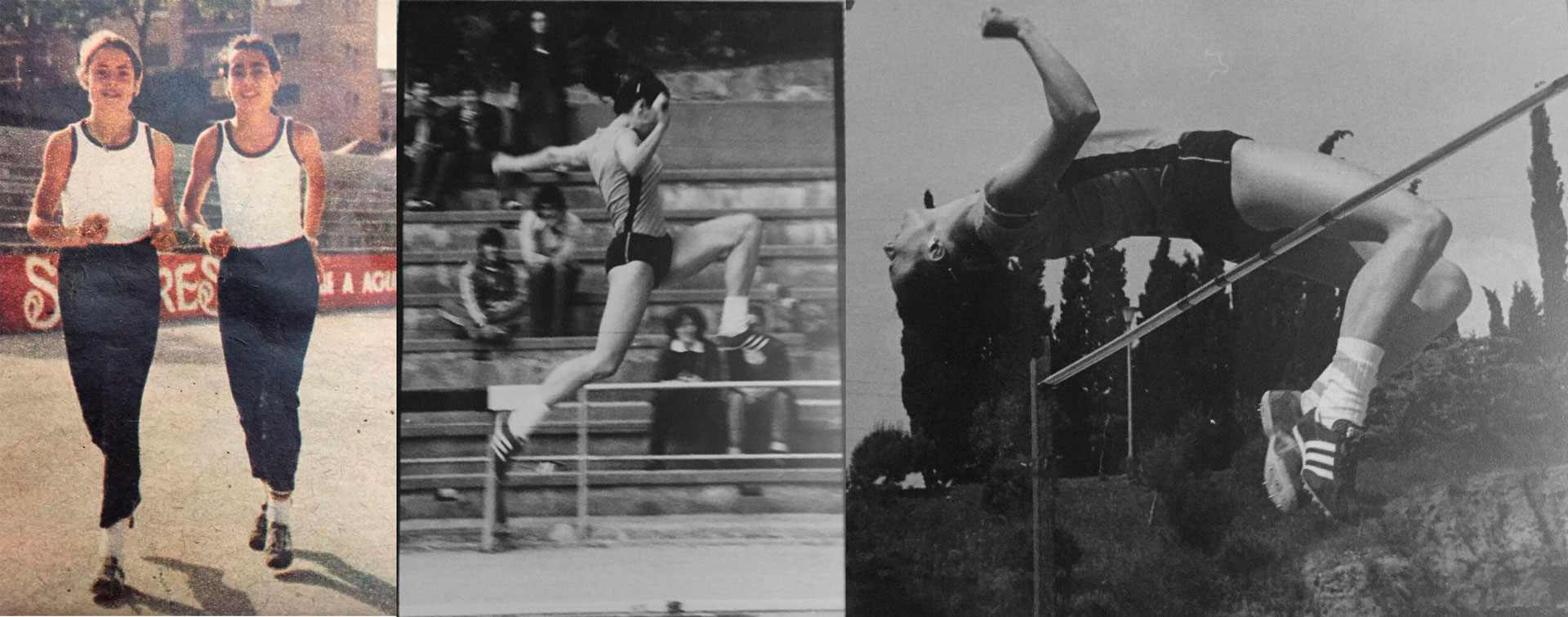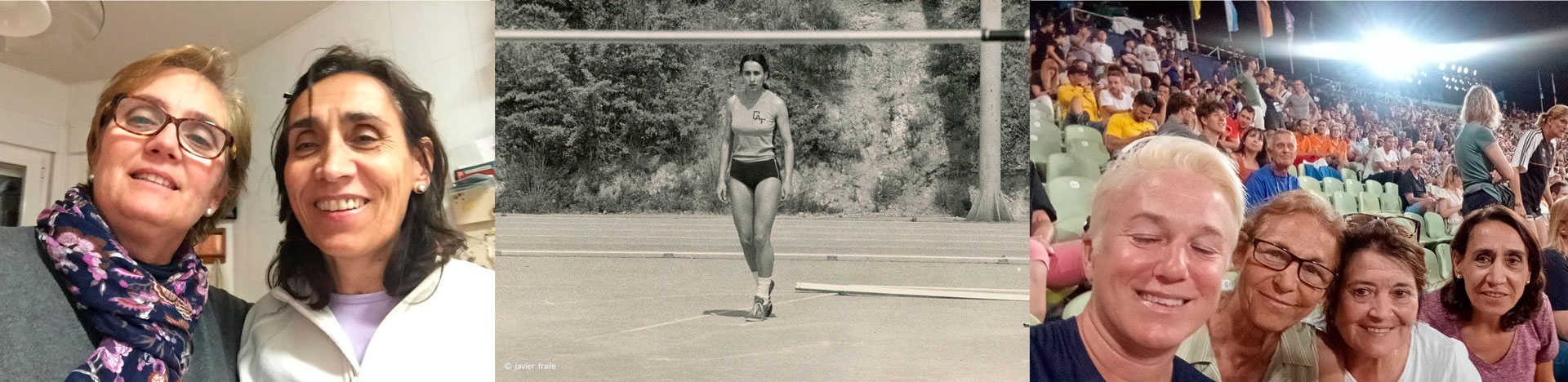 A la izquierda, junto a Olga Dalmau en una foto en los últimos años, en el centro, en su época atlética afrontando la prueba de altura y a la derecha, en el Europeo de Múnich junto a la saltadora de altura Kajsa Bergqvist (2.06) que aparece en primer plano.