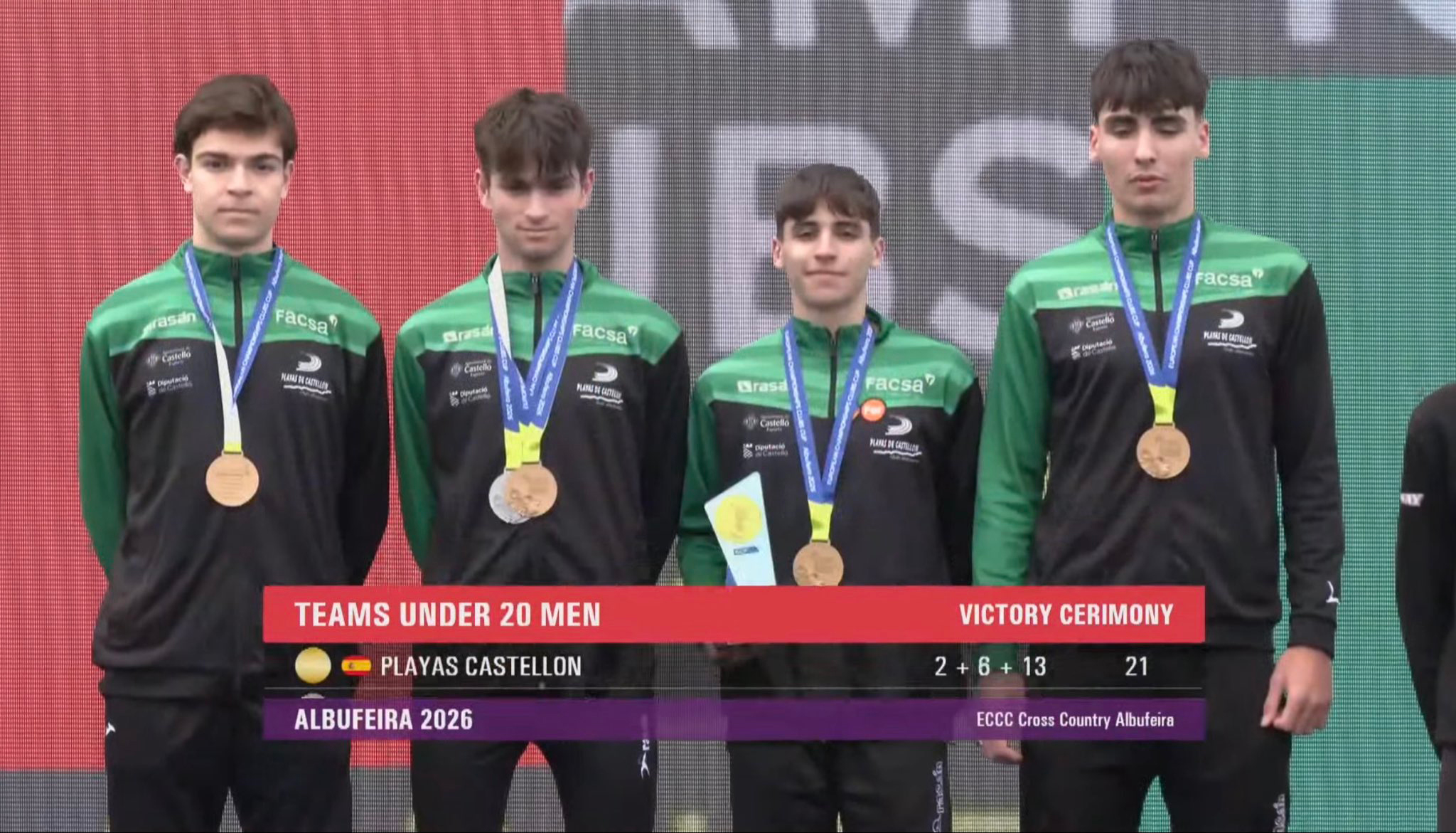 Histórica jornada para los clubes españoles en la Copa de Europa de Campo a Través por clubes celebrada este domingo en la localidad portuguesa de Albufeira, con doble presencia española en el podio absoluto masculino con Facsa Playas de Castellón campeón de Europa y Vicky Foods Athletics tercero y además, el Bilbao Atletismo subiendo nuevamente al podio en senior mujeres (3ª).
