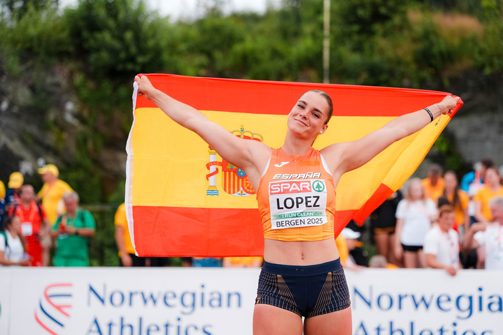 Jamás una reluciente medalla de oro había colgado de los fornidos hombros de una lanzadora española en un Europeo sub-23, pero semejante hito aconteció el ya histórico 20 de julio de 2025 cuando Inés López, que figuraba con la 4ª mejor marca de las contendientes, decidió insubordinarse frente el ránking previo y descerrajó un inicial trallazo medido en 58.20m para liderar de principio a fin el concurso. Su triunfo en Bergen resultó tan claro y firme como lo son sus ideas, aunque sabe dejarse sorprender positivamente por las jugadas que le depara el inescrutable destino, ¿cuál será la próxima?