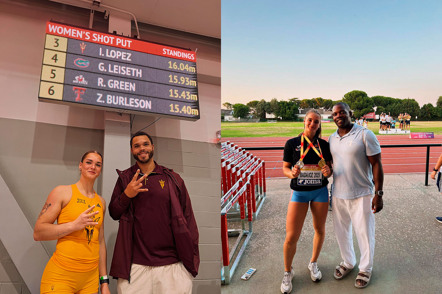 Mirando por el retrovisor, rememora a continuación su andadura en el 'Gras Team'; "yo empecé a entrenar con Jorge y con su grupo en 1º de Bachillerato y estuve dos años, hasta que me fui a Estados Unidos, aunque seguí entrenando en el grupo cuando venía en verano y Navidad; fue una etapa muy bonita, con él aprendí y crecí mucho y tengo claro que no sería la lanzadora que soy de no haber sido por Jorge y el resto de mis anteriores entrenadores"; de forma prolija nos cuenta ahora quiénes componen su cuerpo técnico actualmente: "en Arizona, tengo dos entrenadores, el principal es Turner Washington y Marcus Makovicka es el preparador físico; el primero fue mundialista en Budapest 2023 en disco y tiene marcas de 66.32 en disco y 21,85m en peso, mientras Marcus sabe muchísimo de entrenamiento de fuerza para lanzadores, le admiro mucho y es quien planifica mis sesiones de gimnasio”.