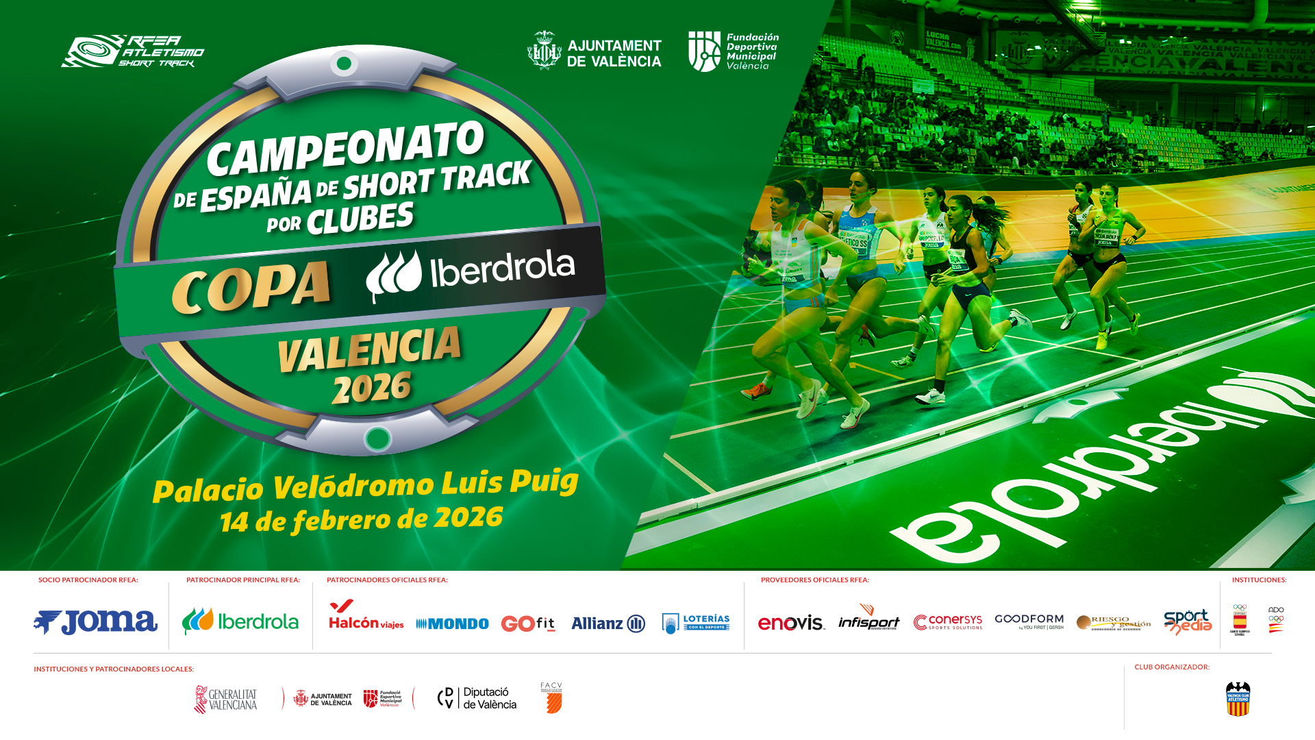 Valencia vuelve a convertirse en el epicentro del atletismo por clubes con la celebración de la 45ª edición del Campeonato de España de Clubes, con la disputa de la Copa Iberdrola en el Palau Velódrom Luis Puig. Ocho escuadras pelearán por el título en una competición que promete máxima igualdad y espectáculo.