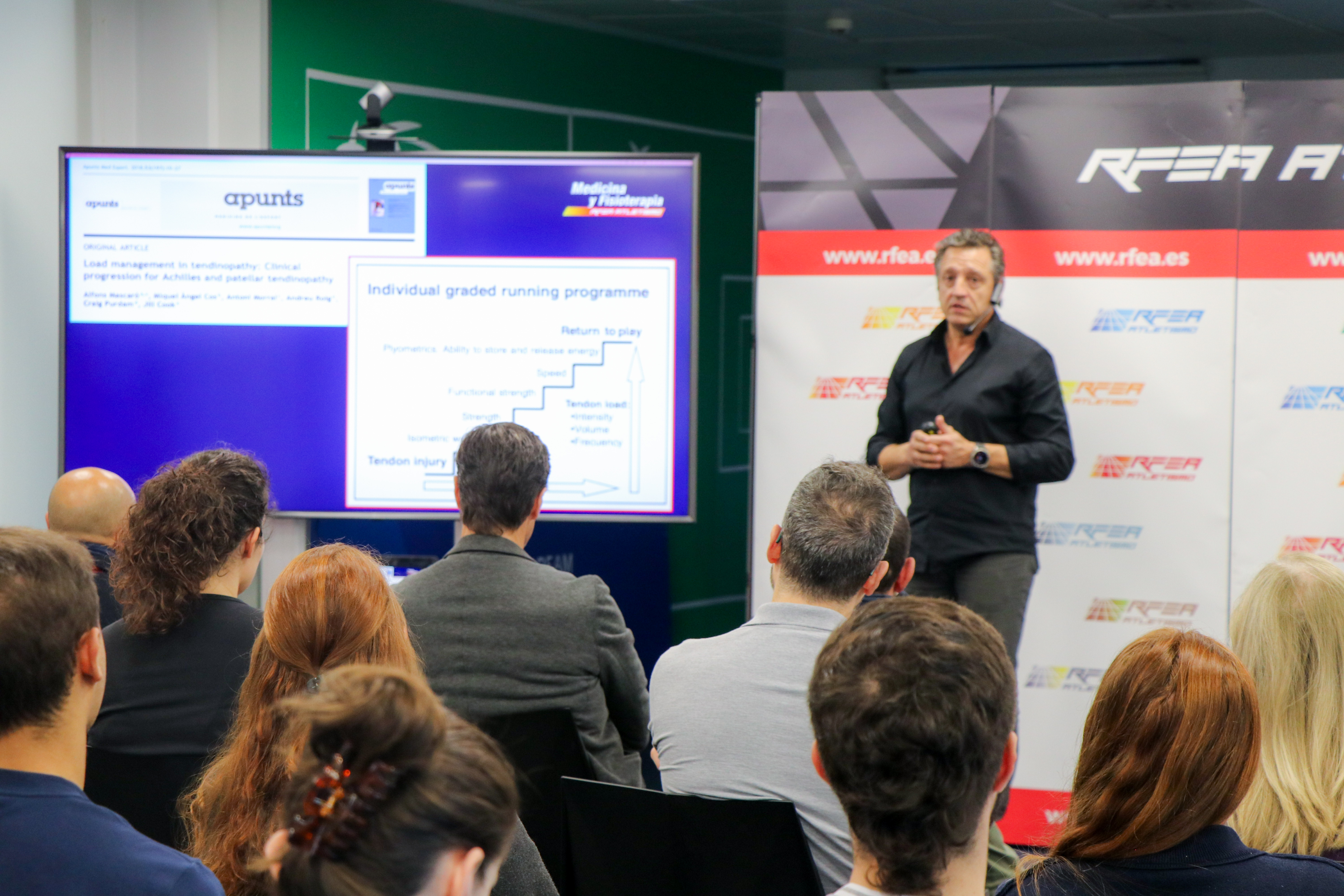 Pero, más allá de su dimensión técnica y formativa, la presentación de esta guía tuvo un profundo componente humano y emocional. Tal y como recordó el presidente de la RFEA, esta publicación es también un homenaje explícito a Ángel Basas, uno de los fisioterapeutas más emblemáticos de la Federación, fallecido hace tres años, y una figura clave en el desarrollo del tratamiento de las tendinopatías en el atletismo español. Chapado evocó su trayectoria, su espíritu pionero y su generosidad a la hora de compartir conocimiento, recordando incluso su experiencia personal como deportista tratado por Basas y la huella que dejó en varias generaciones de atletas y profesionales.