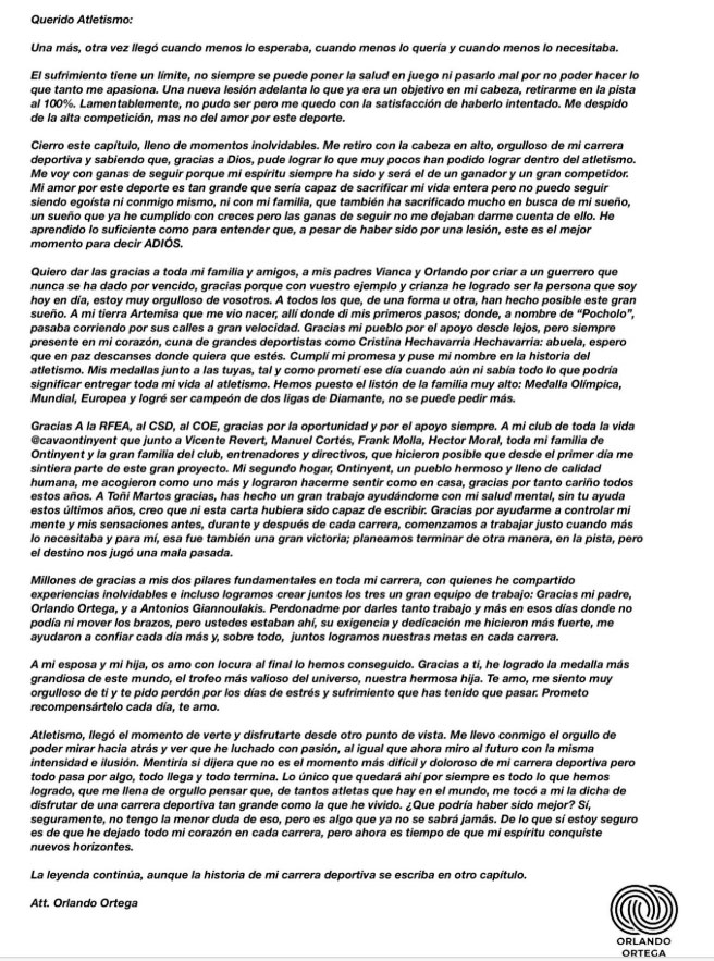 A nosotros también nos has emocionado con toda tu trayectoria estos años. Hasta siempre, Orlando, y que tu legado al atletismo español e internacional perviva y se prolongue por muchos años más.