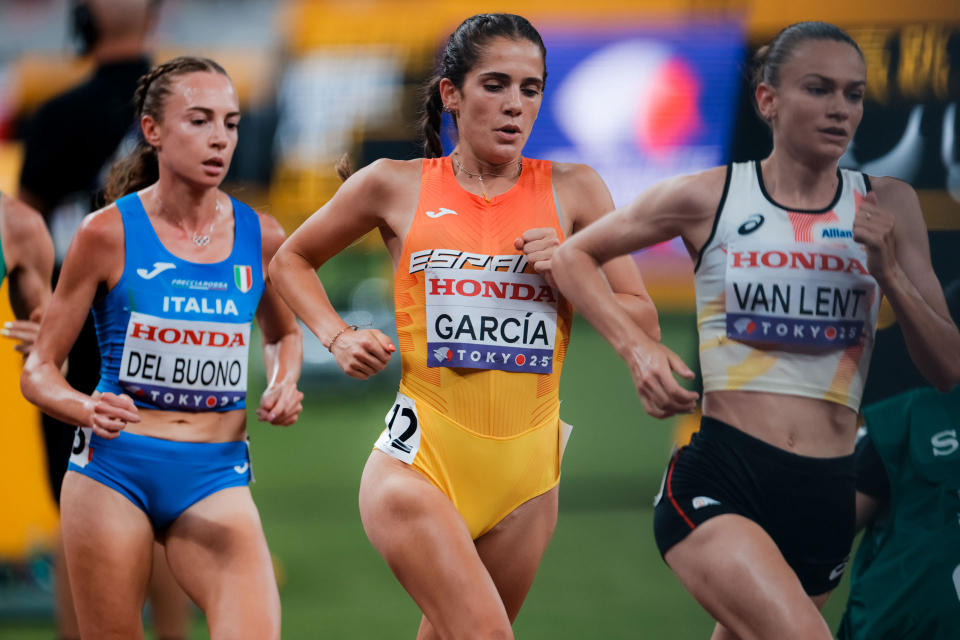 Idaira Prieto lució en la primera de las dos semifinales el apellido histórico legado por su padre y preparador, Antonio, leyenda del atletismo que, entre otros muchos sitios, vistió la camiseta del equipo español en este mismo emplazamiento (que no recinto, pues el Estadio Nacional se construyó después) en el Mundial de Tokio’91. Ambos comparten con Marta y Antonio Serrano el honor de ser las únicas parejas padre-entrenador de nuestra Selección que saben lo que es competir en un Campeonato del Mundo. Pasaban las 8 primeras a la final del sábado (14:29) y ella partía con la 16ª mejor marca (14:55.15), con lo que fue acertada su táctica de colocarse al final de grupo en espera de poder ir recogiendo damnificadas, aunque el ritmo no fue muy exigente de salida (2:59.32). El 3000 lo pasó precisamente 16ª (9:03.75). Tiraba Tanaka (12:11.53) para delirio del público, con la plusmarquista universal Beatrice Chebet (a la postre ganadora con 14:45.62) y la campeona de Europa Battocletti a su estela. La segoviana, debutante en un Mundial, trataba de remontar, pero solo pudo ganar un puesto y finalmente concluyó 15ª en 15:11.16, la segunda mejor marca de su vida.