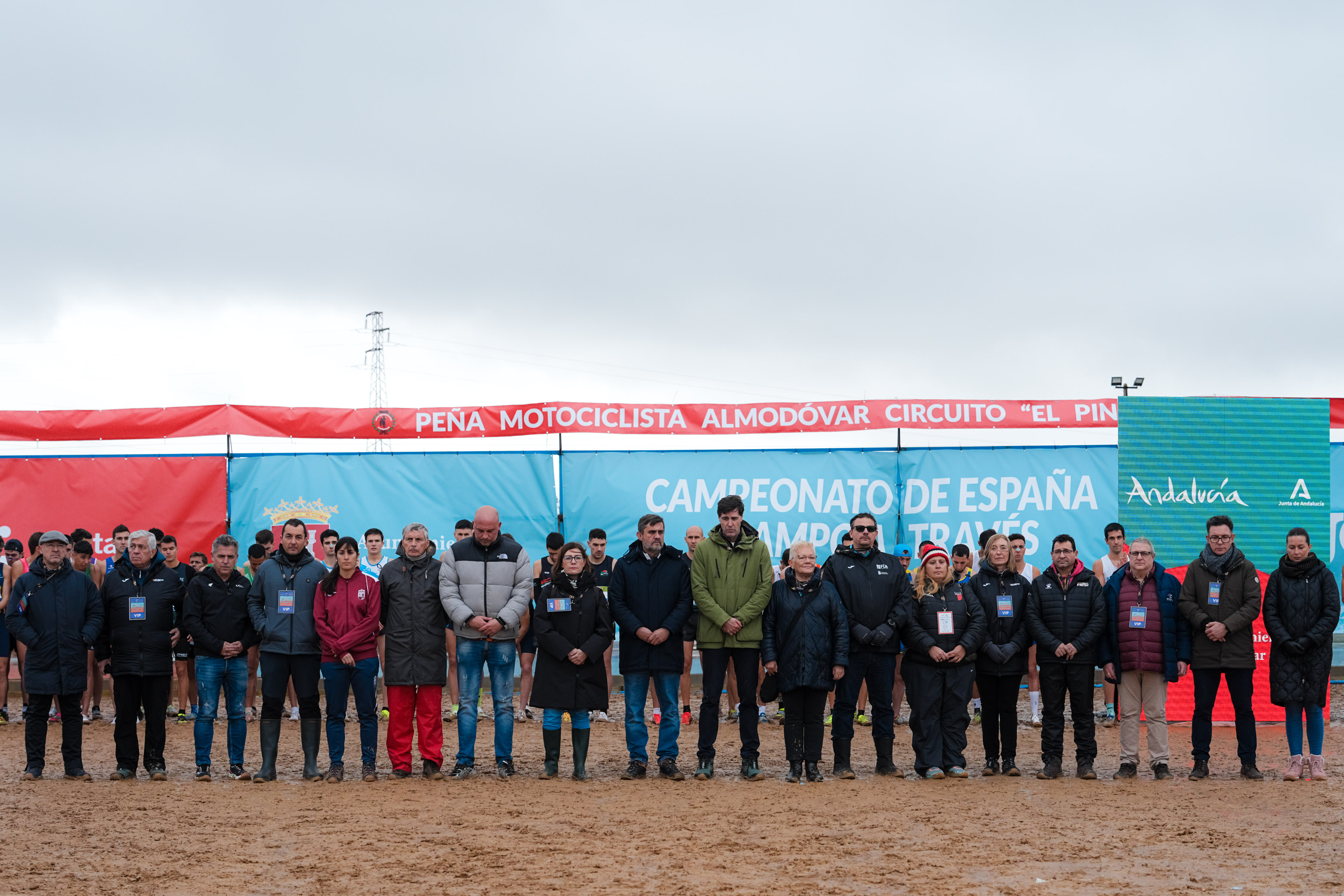 Antes de la prueba masculina absoluta se guardó un muy emotivo minuto de silencio en memoria de las víctimas del terrible accidente ferroviario del pasado domingo en Adamuz, en la provincia cordobesa, muy cerca de aquí, de Almodóvar del Río.