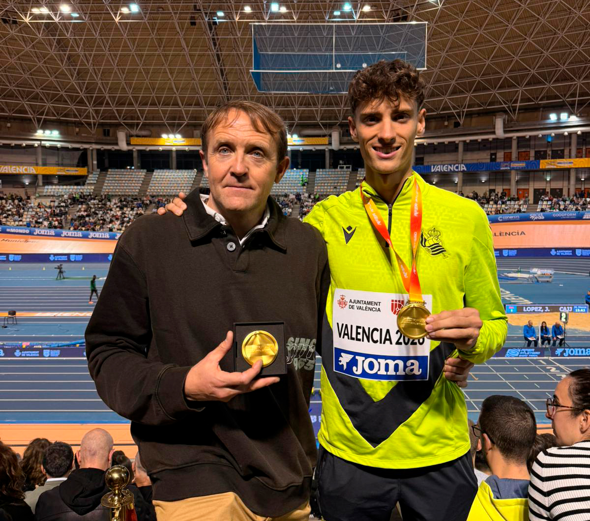 Martín cerró el curso pasado con 3:39.12 en su distancia fetiche, los 1.500m, pero en su debut bajo techo el 13 de enero ya reventó ese crono con 3:37.35, a pesar de coger el último billete del tren que conducía al mitin de Antequera, “no tenía previsto correr allí, pero estando en la sauna con ‘Villa’ me saltó una noticia de Instagram anunciando que Moha (Attaoui) iba a correr un 1.500 allí y recuerdo que le dije, “qué buena hubiera sido competir con él allí; lo hablamos y llamamos a mi representante, Álvaro Rodríguez a última hora; me sorprendió que, sin haber hecho ritmo de competición, me saliera 3:37:35 a la primera; la semana siguiente fui a Sabadell, sabía que la carrera iba a ser más lenta (3:39.38), pero acabé muy bien, me ganó Fontes al sprint por 8 centésimas y después (31 de enero) competí en Valencia, quedé segundo entre Mariano García y Adrián Ben, con 3:37:57”; a pesar de ese enero de ensueño en los 1.500m, saltó la sorpresa y eligió el 3.000 de cara al Nacional, “fue una decisión en el último minuto: corrí el 3000 de la Copa de clubes en Valencia, se me dio muy bien y noté que tenía un cambio final muy fuerte; como no tenía la mínima del Mundial para 1.500 y a ‘Villa’ no le gusta acelerar las cosas, él mira al largo plazo, decidimos apostar por el 3.000”; lo que no todos sabrán es el ambicioso plan que había visualizado la nueva perla de la Real Sociedad y que solo su prudente técnico abortó, “me veía fuerte y quería doblar 1.500 y 3.000 pero él me hizo ver que había semifinales de 3.000 y hacer cuatro carreras era demasiado, así que me lo prohibió (risas); me gusta correr todo porque es un privilegio para mí competir con atletas como Mariano, Adrián o Pol, a los que hace dos años veía por televisión, me parece surrealista compartir línea de salida con ellos, es un sueño hecho realidad”, explica humilde sobre su voracidad competitiva.